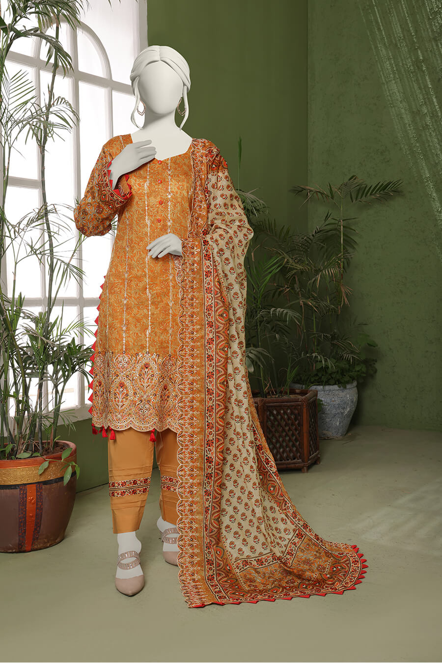 Shirt: 2.75 Meters | Dupatta: 2.25 Meters | Trouser: 2.25 Meters