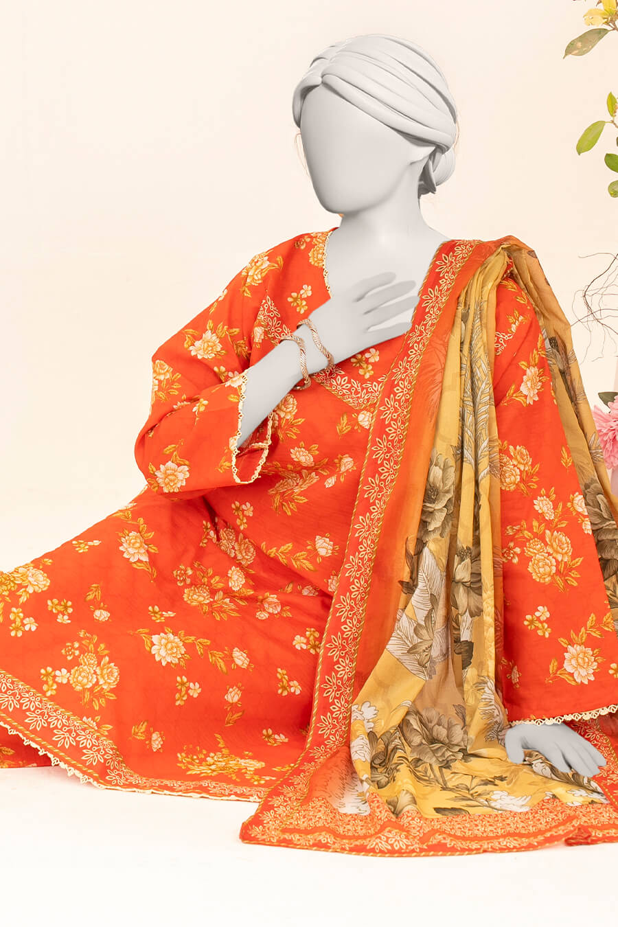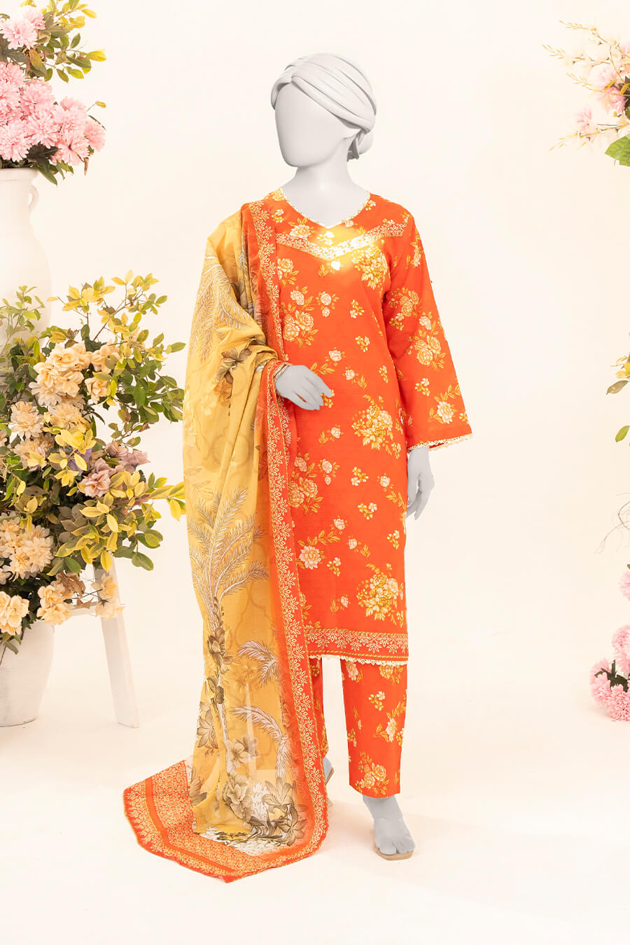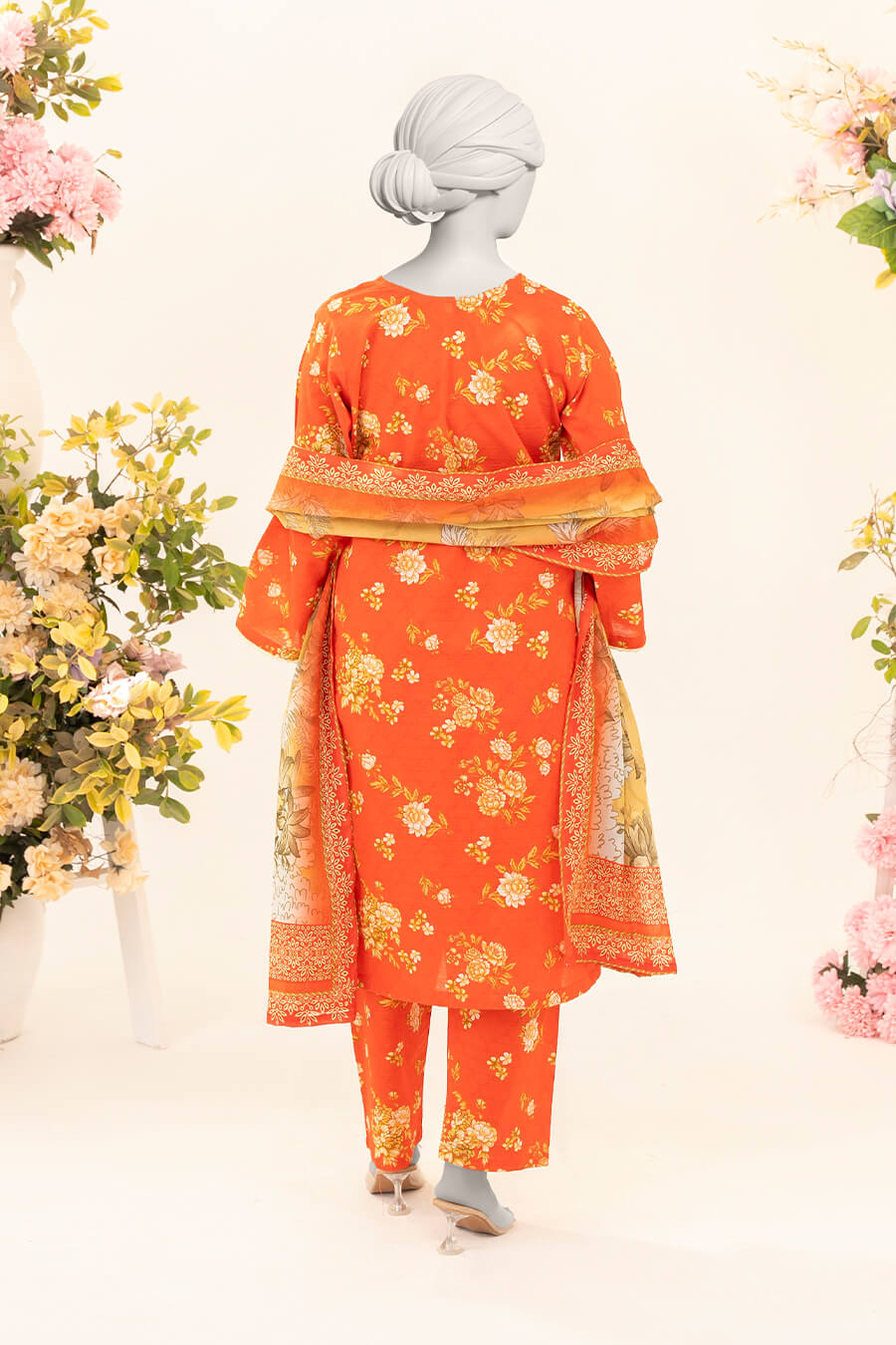 A bold orange shade infused with warmth and energy. Crafted in premium Doriya lawn for a confident look.