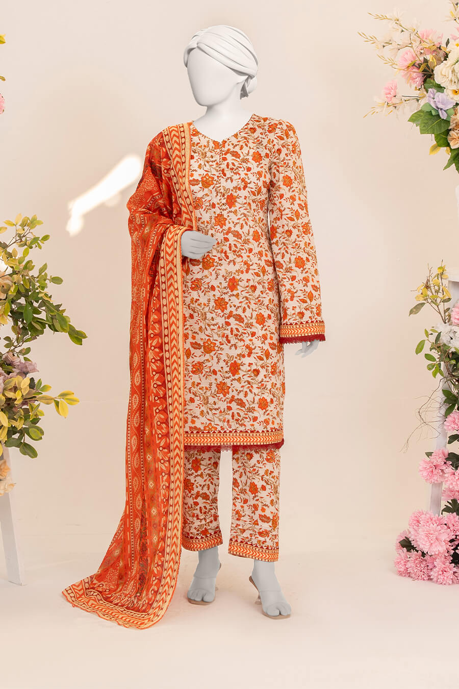 A soft light-orange shade inspired by morning warmth. Crafted from premium Doriya lawn fabric.