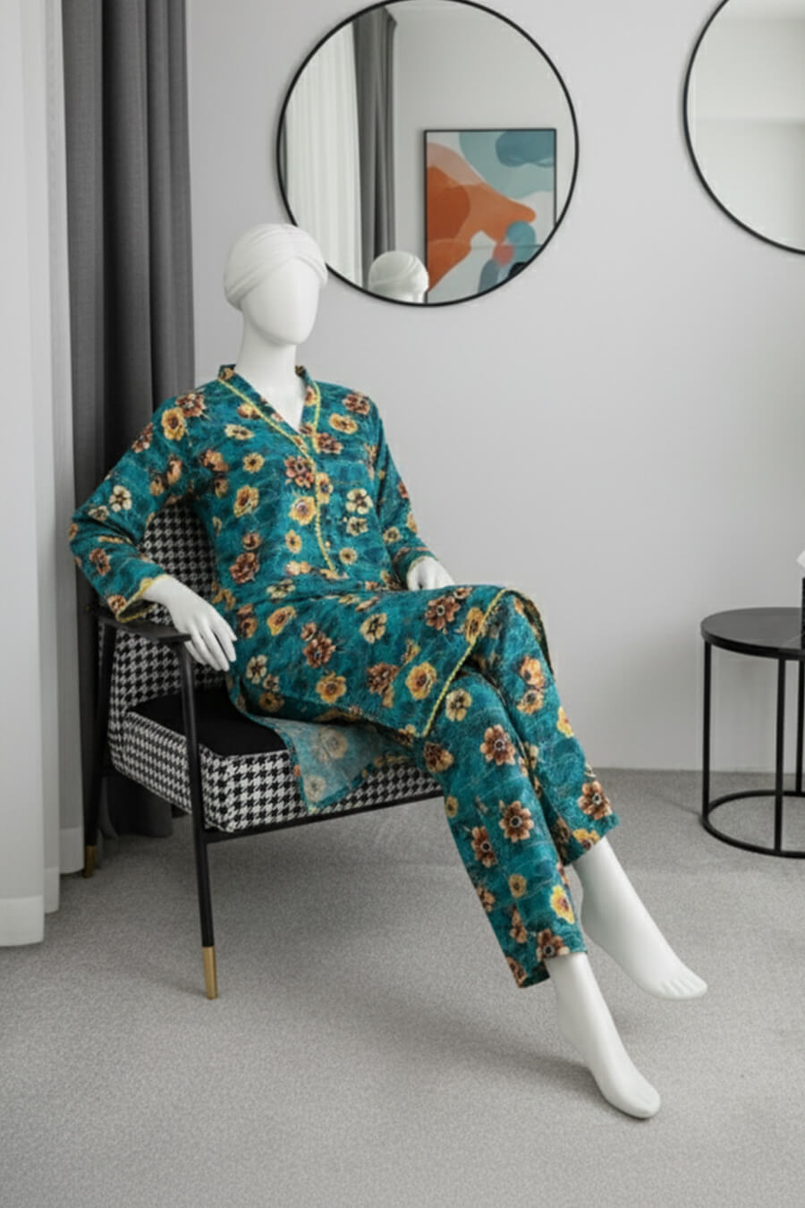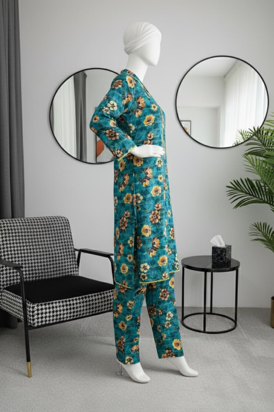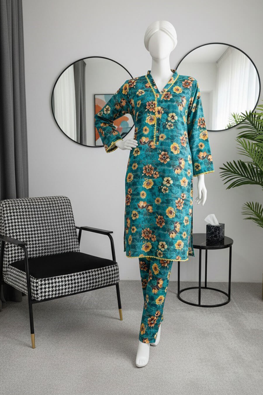 Printed Stitched 2-Piece Allover Design on Premium Bana Dora Lawn / Slub Lining Doriya Lawn