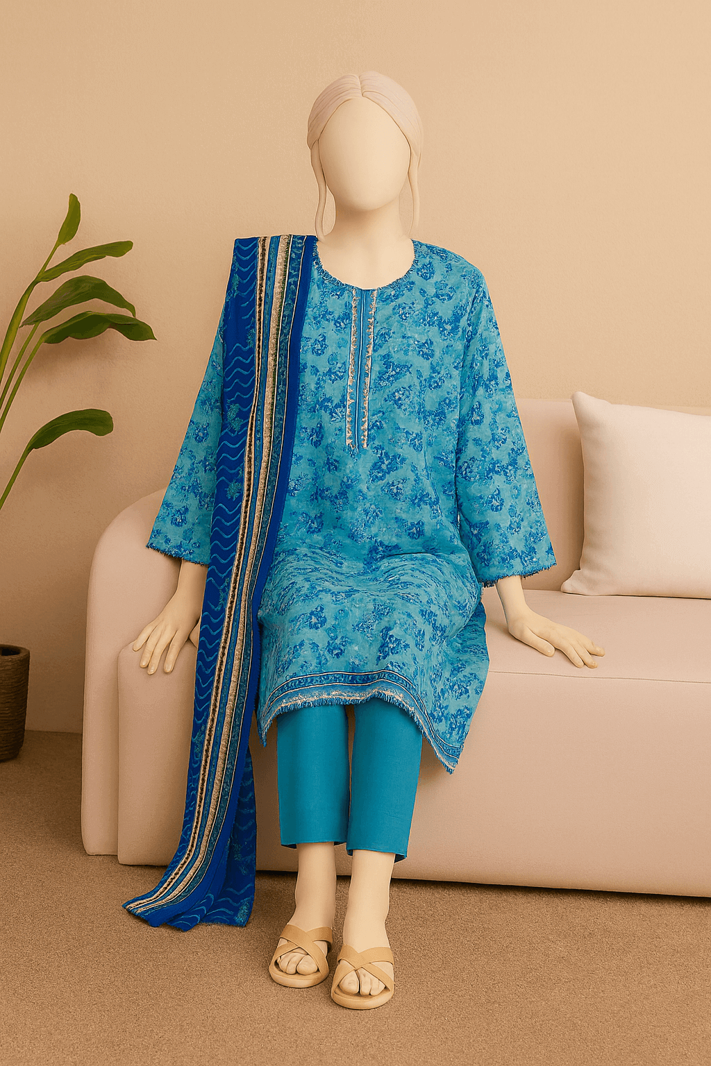 Shirt: 2.75 Meters | Dupatta: 2.25 Meters | Trouser: 2.25 Meters