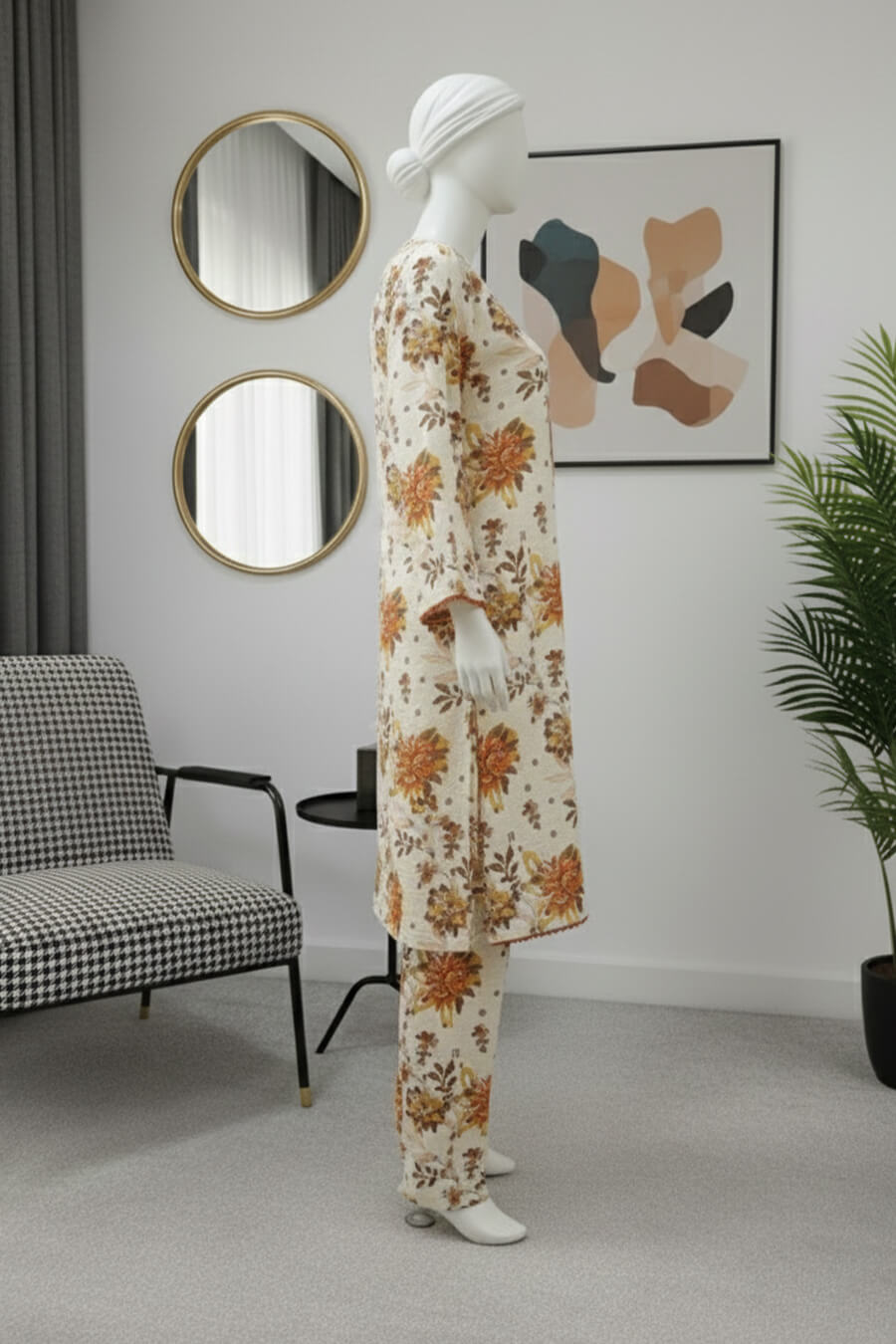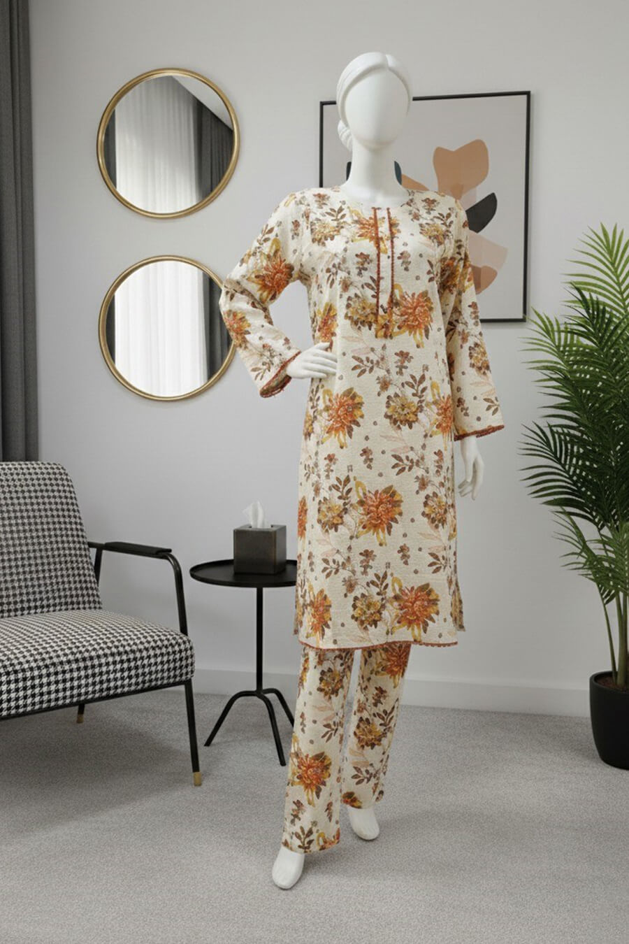 Printed Stitched 2-Piece Allover Design on Premium Bana Dora Lawn / Slub Lining Doriya Lawn