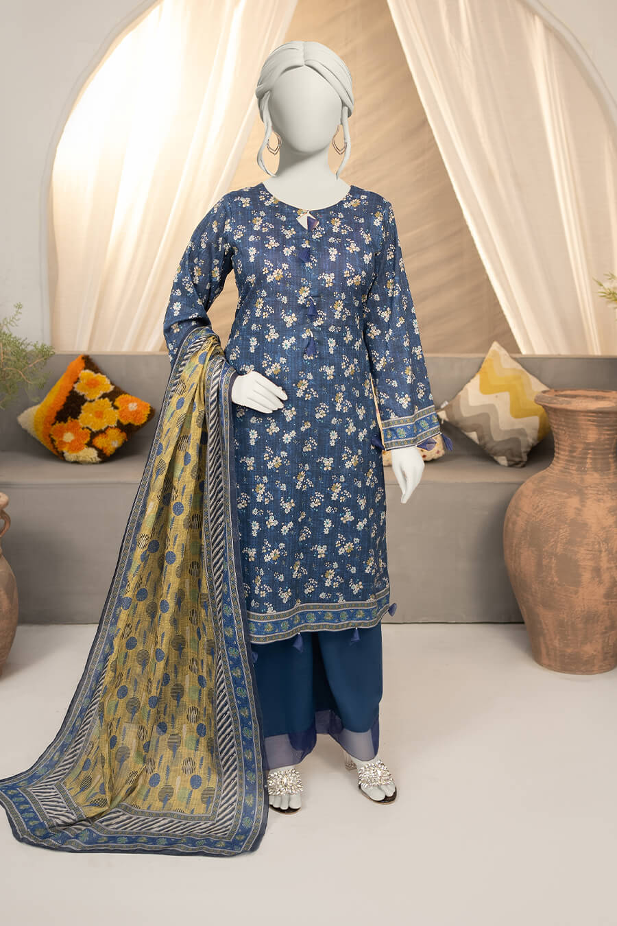 Shirt: 2.75 Meters | Dupatta: 2.25 Meters | Trouser: 2.25 Meters