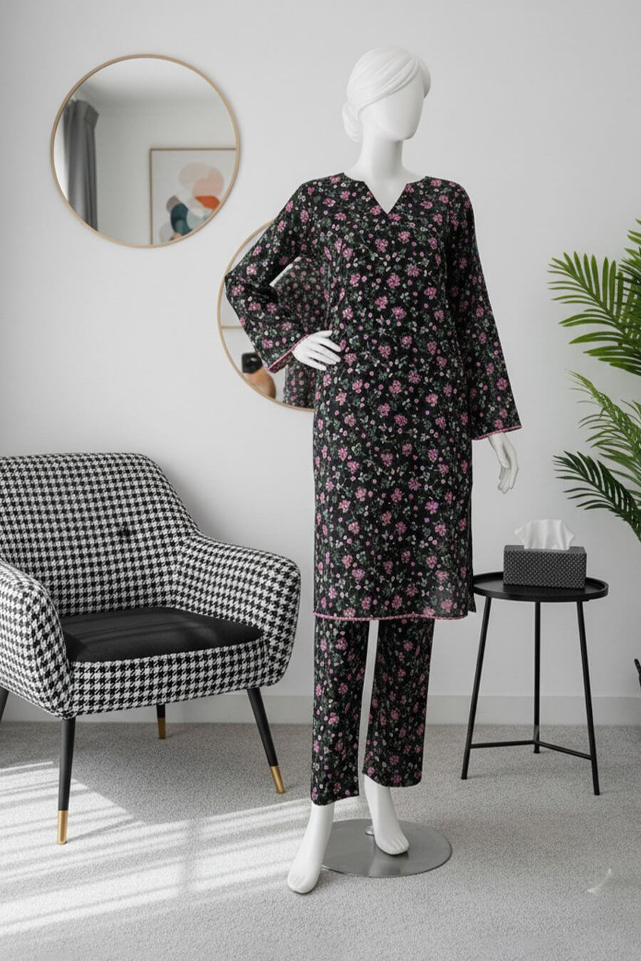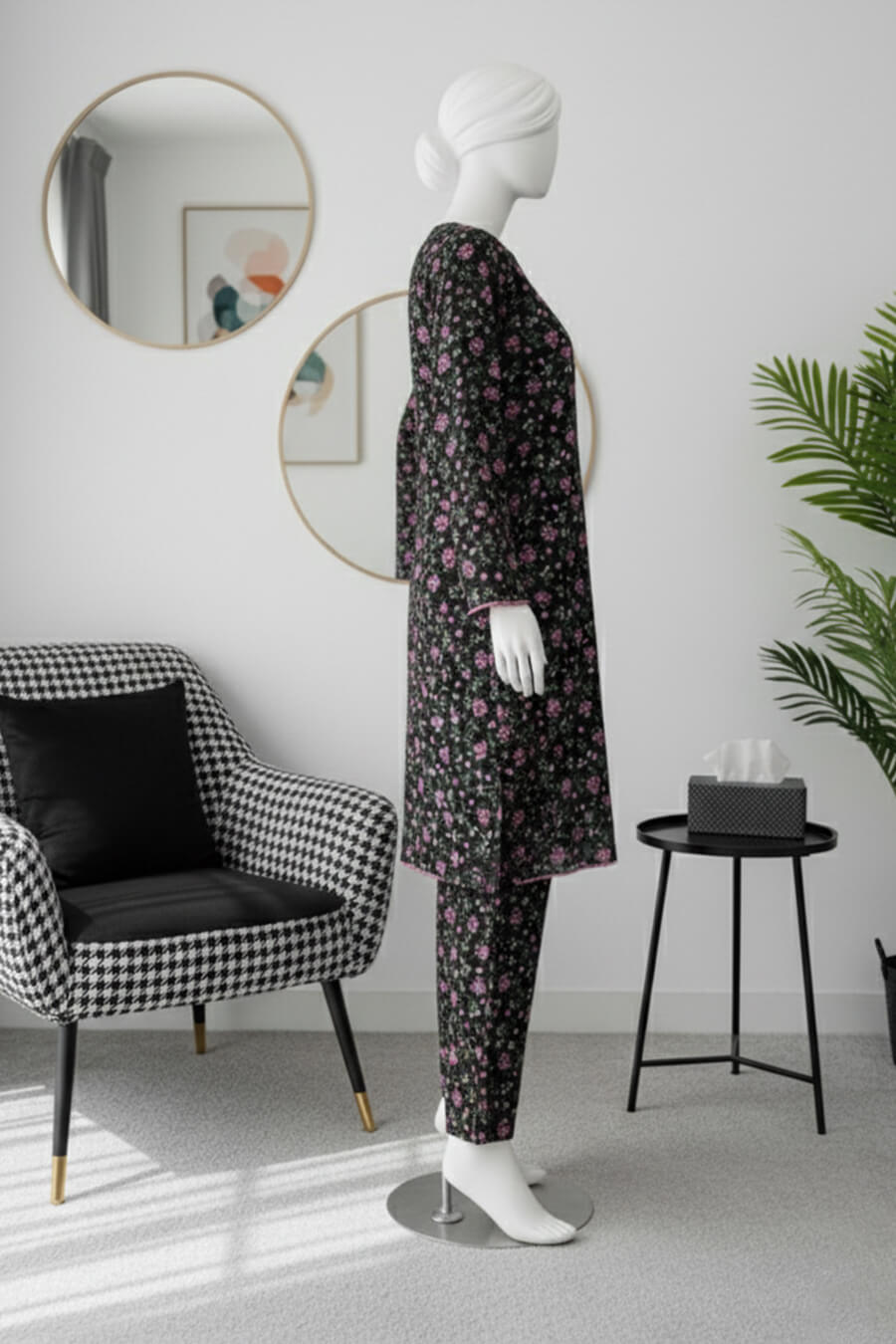 Printed Stitched 2-Piece Allover Design on Premium Bana Dora Lawn / Slub Lining Doriya Lawn