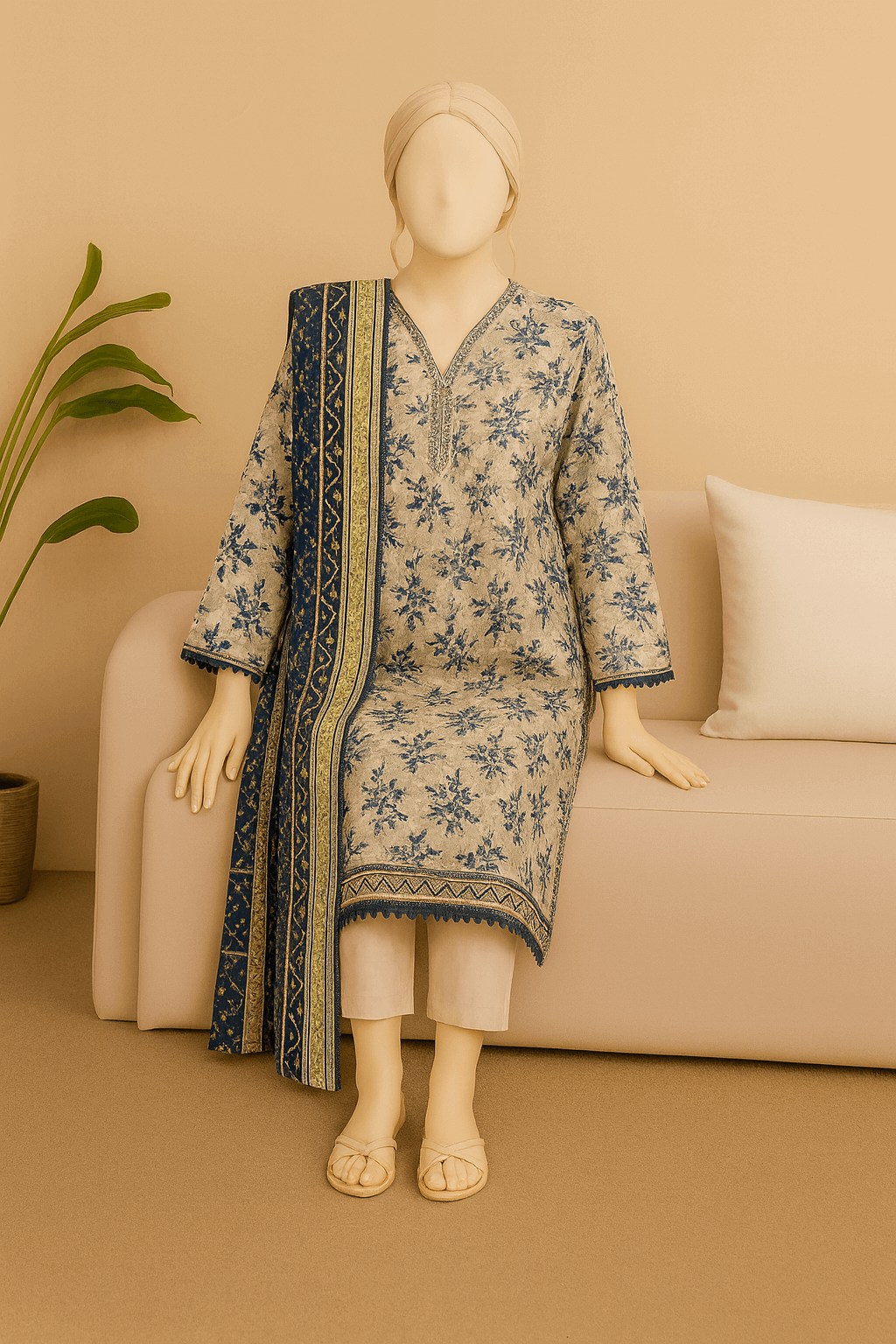 Shirt: 2.75 Meters | Dupatta: 2.25 Meters | Trouser: 2.25 Meters