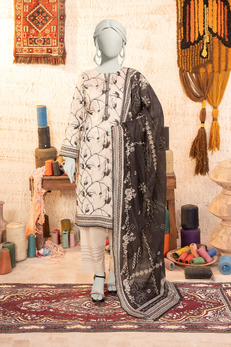 A graceful cream-toned digital printed lawn suit designed for effortless summer elegance.
