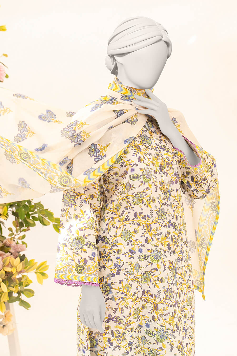 A soothing off-white shade that exudes calm sophistication. Designed in premium Doriya lawn for effortless elegance.