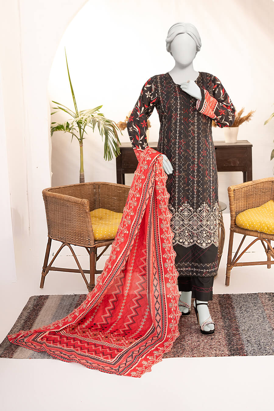 Shirt: 2.75 Meters | Dupatta: 2.25 Meters | Trouser: 2.25 Meters