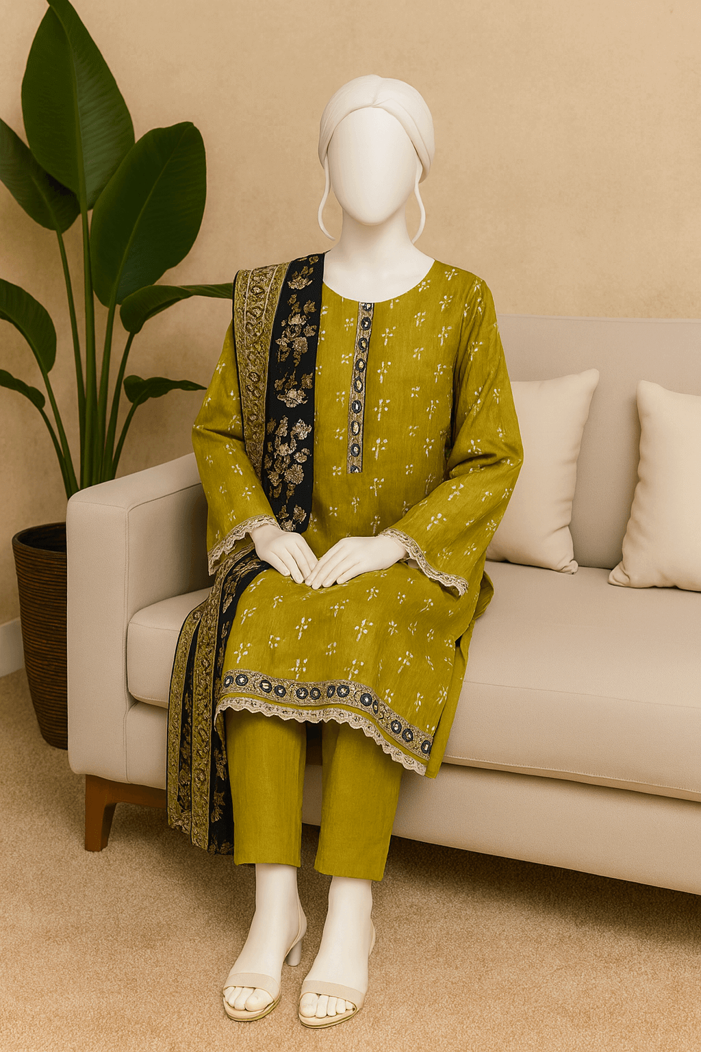 Shirt: 2.75 Meters | Dupatta: 2.25 Meters | Trouser: 2.25 Meters