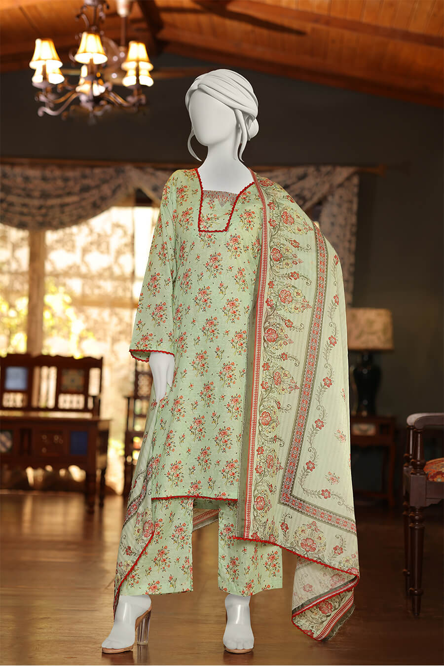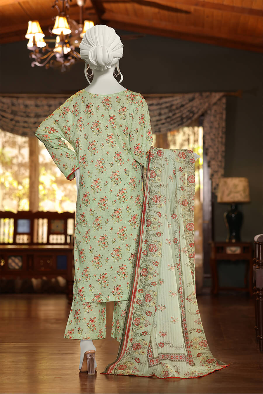 Soft pistachio green that reflects the beauty of early morning dew. Ideal for fresh, graceful looks with luxurious Doriya lawn fabric.