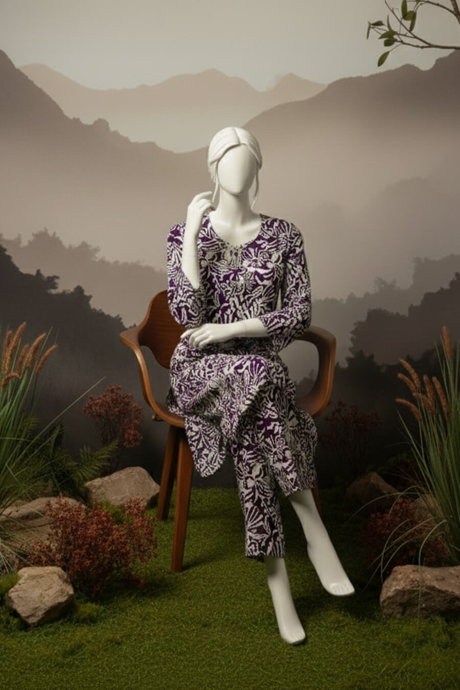 Printed Stitched 2-Piece Allover Design on Premium Bana Dora Lawn / Slub Lining Doriya Lawn