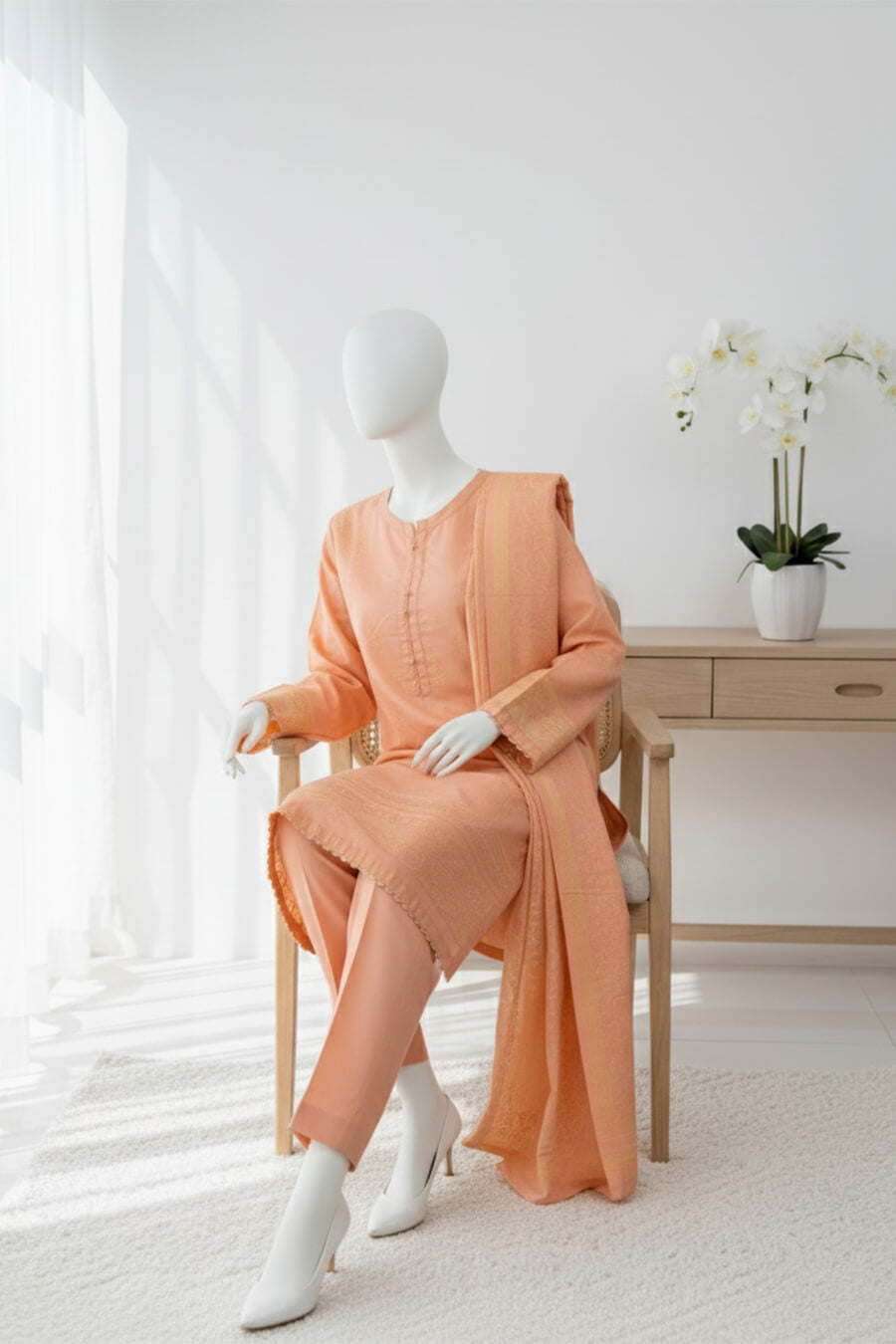 Doria Brochia Jacquard Shirt & Dupatta with Plain Dyed Trouser