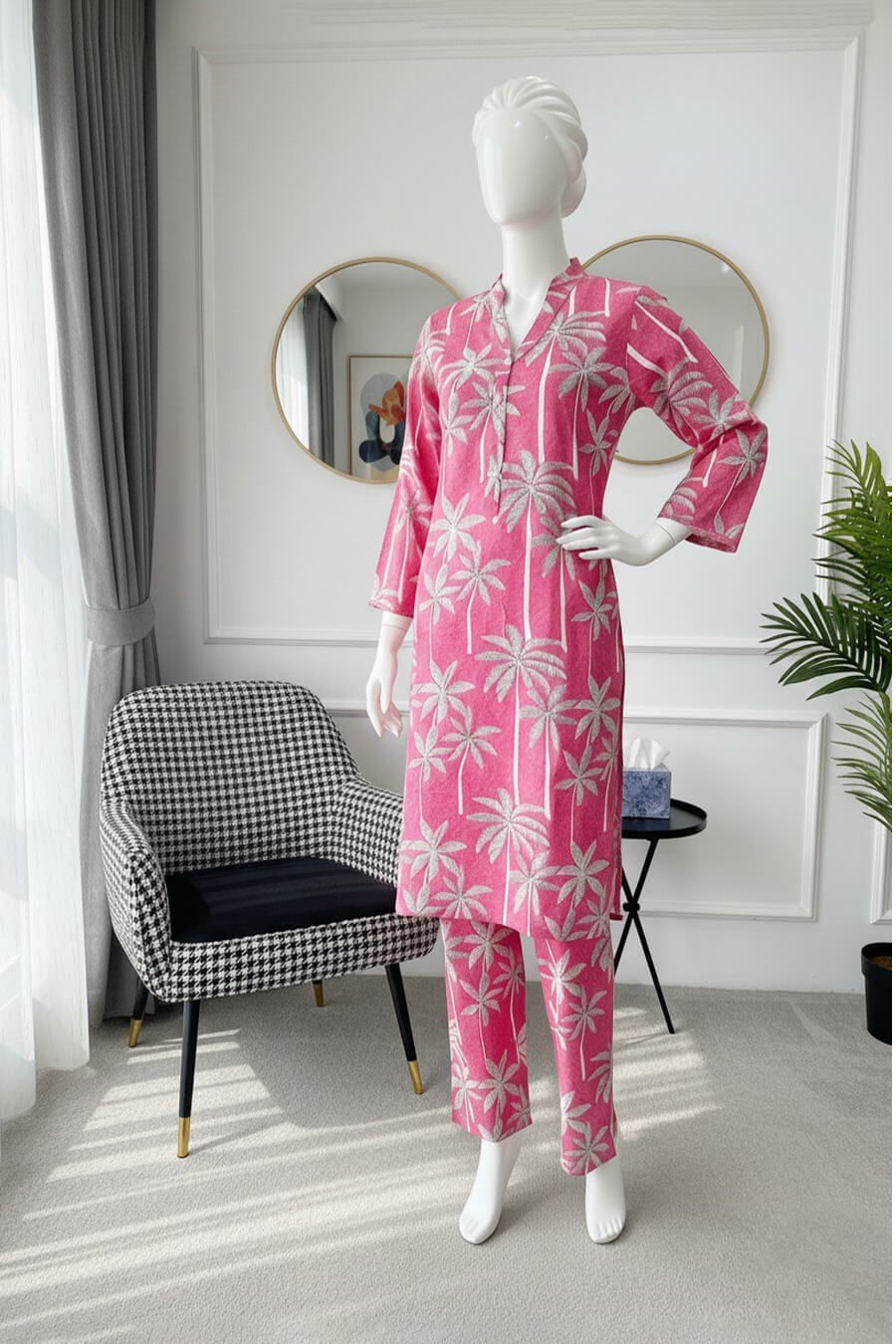 Printed Stitched 2-Piece Allover Design on Premium Bana Dora Lawn / Slub Lining Doriya Lawn