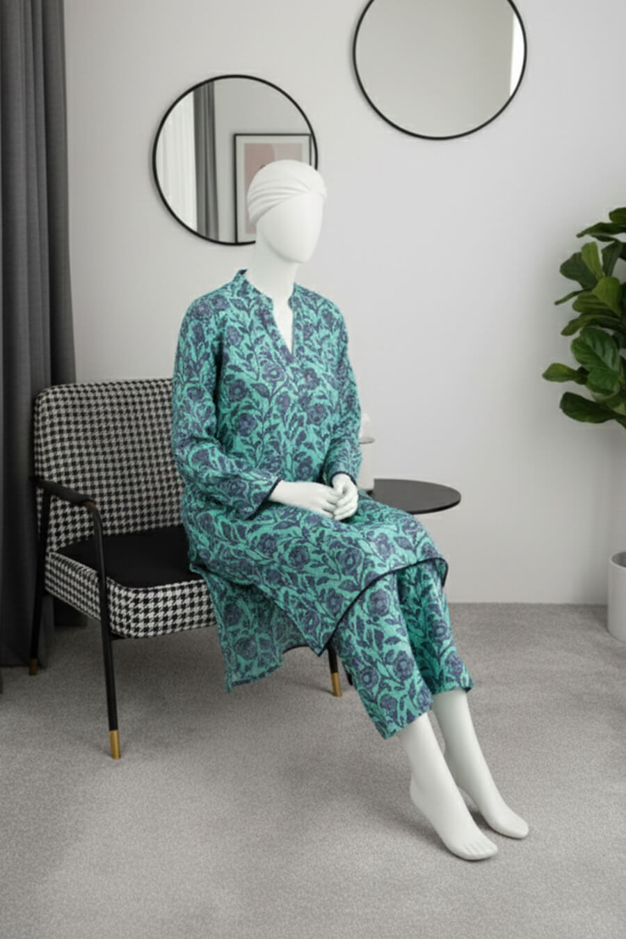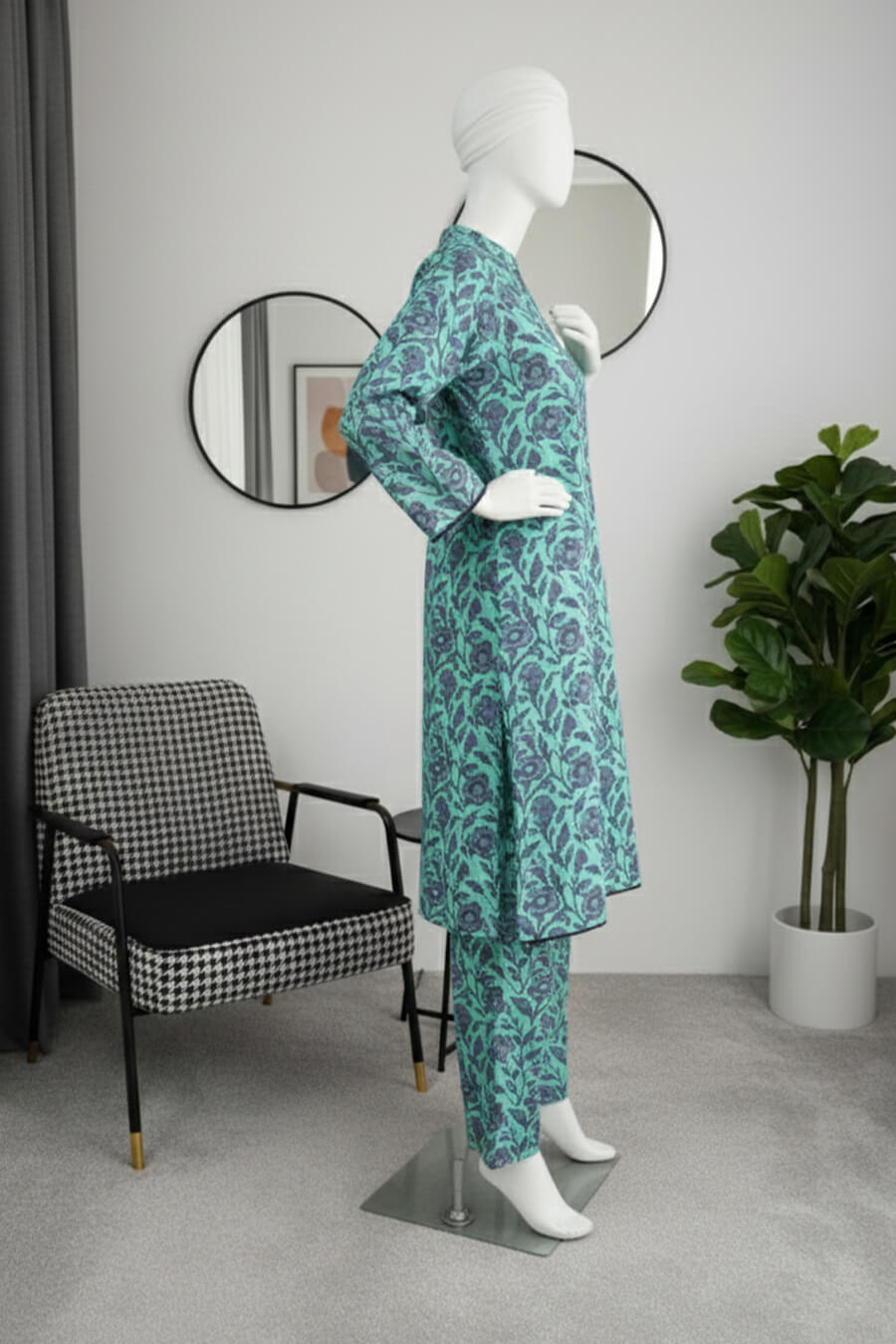 Printed Stitched 2-Piece Allover Design on Premium Bana Dora Lawn / Slub Lining Doriya Lawn