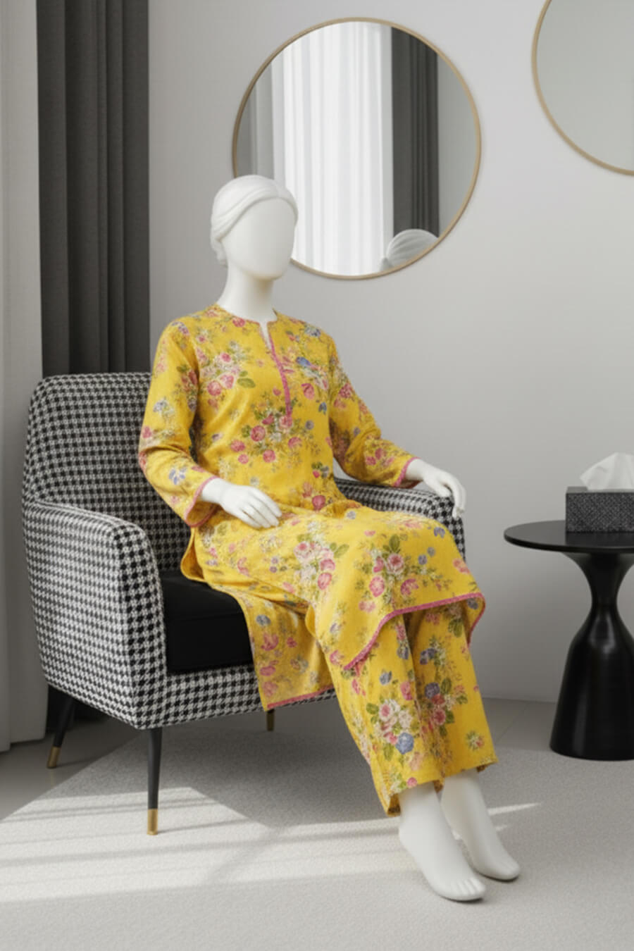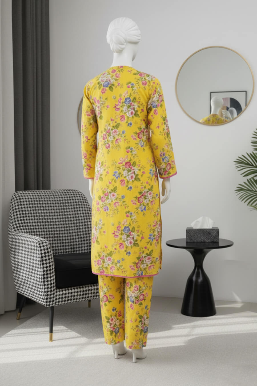 Printed Stitched 2-Piece Allover Design on Premium Bana Dora Lawn / Slub Lining Doriya Lawn