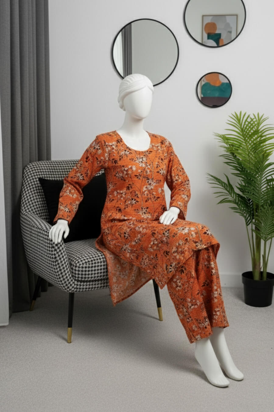 Printed Stitched 2-Piece Allover Design on Premium Bana Dora Lawn / Slub Lining Doriya Lawn