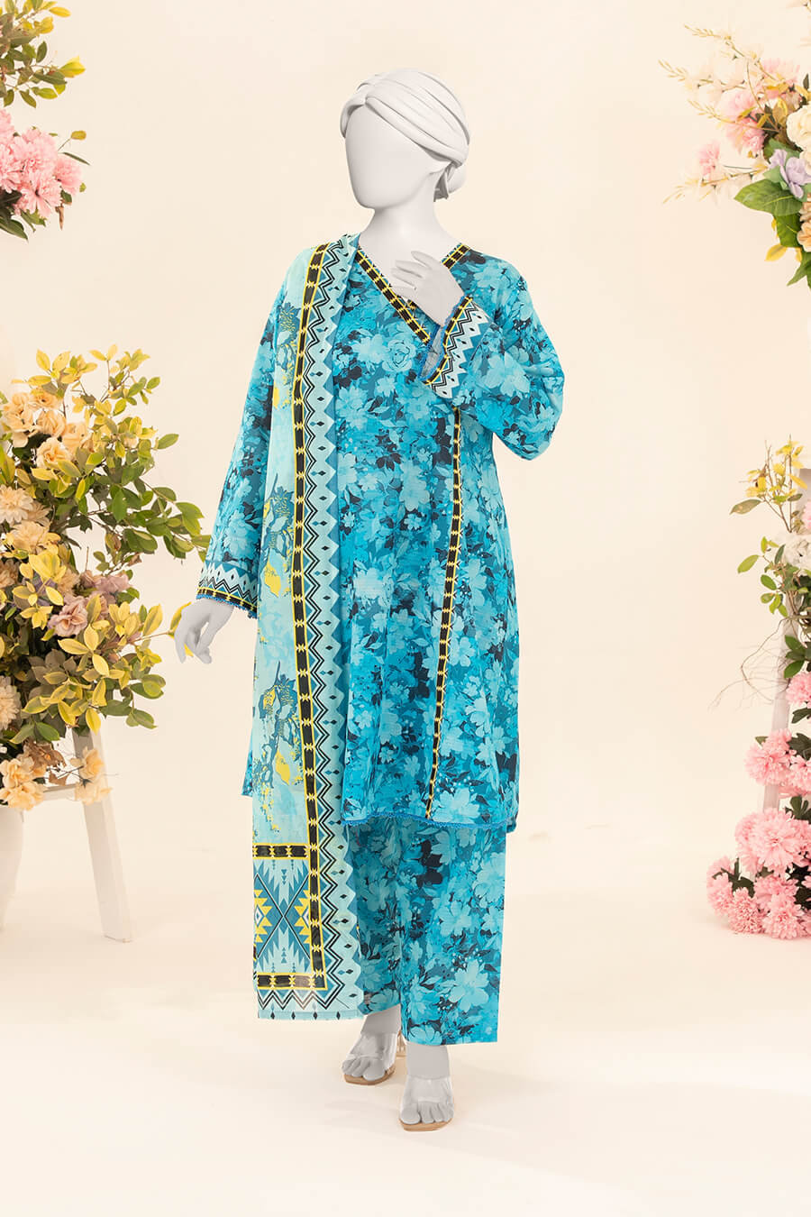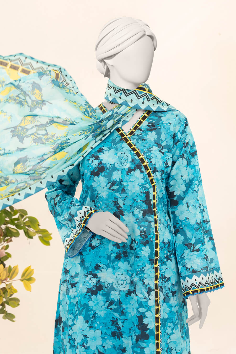 A refreshing turquoise blue inspired by ocean tones. Designed on premium Doriya lawn fabric.