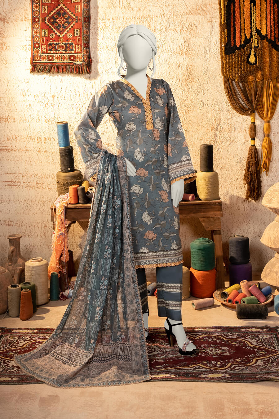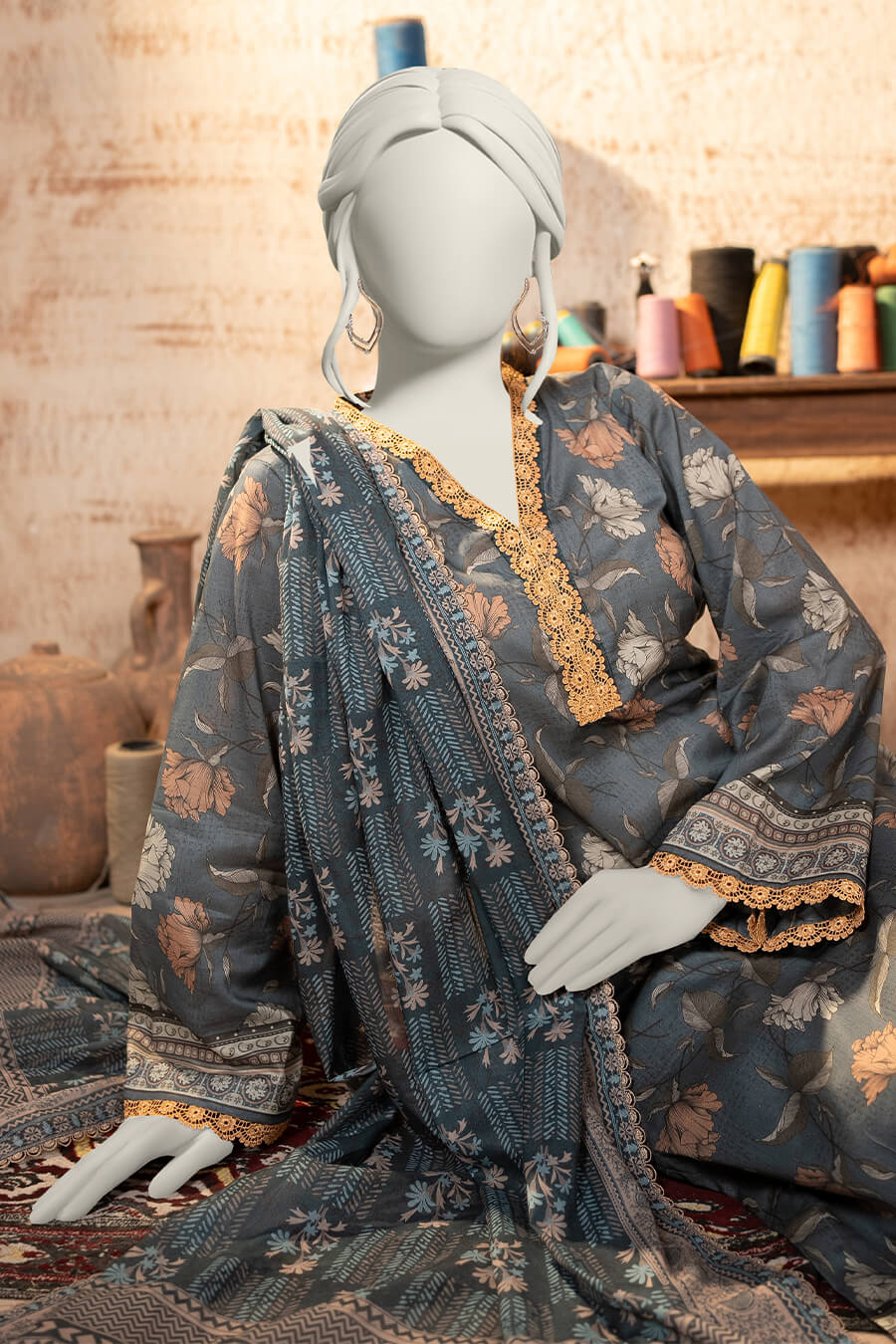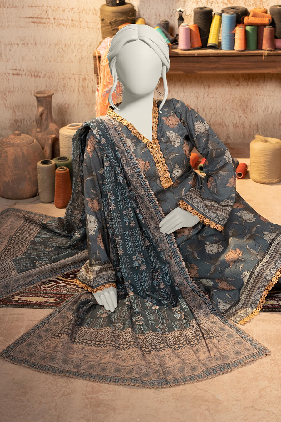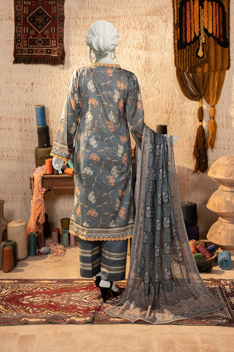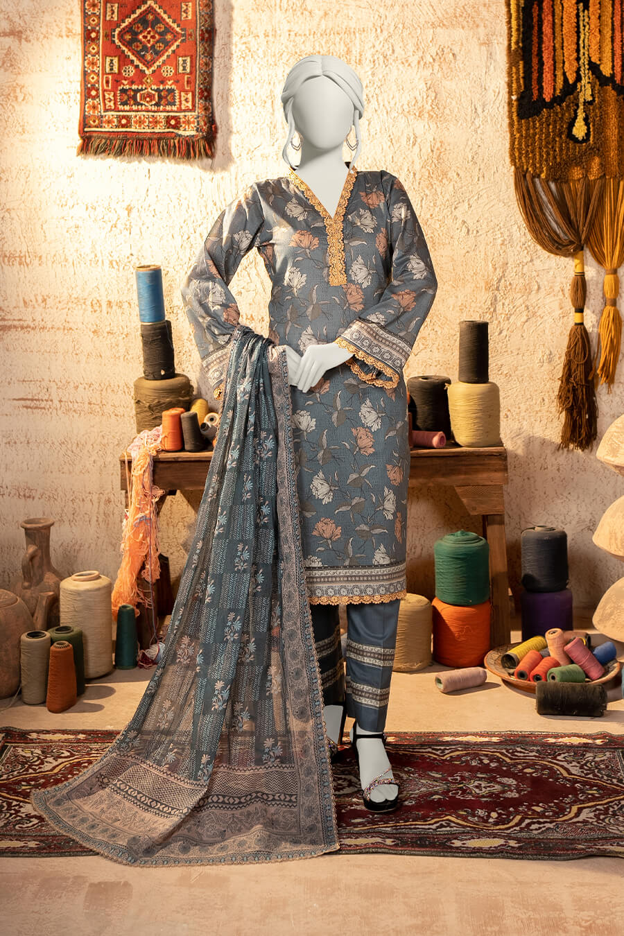 Shirt: 2.75 Meters | Dupatta: 2.25 Meters | Trouser: 2.25 Meters